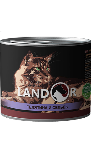 телятина 55%, сельдь 15%; бульон 28,9%, минералы 1%, льняное масло 0,1%, таурин